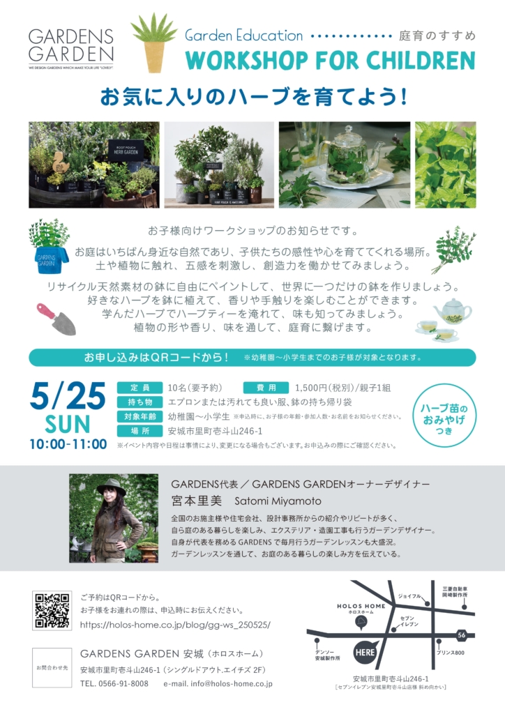 ハーブの効能など大人も楽しめる内容となっておりますので、ぜひご参加くださいませ。