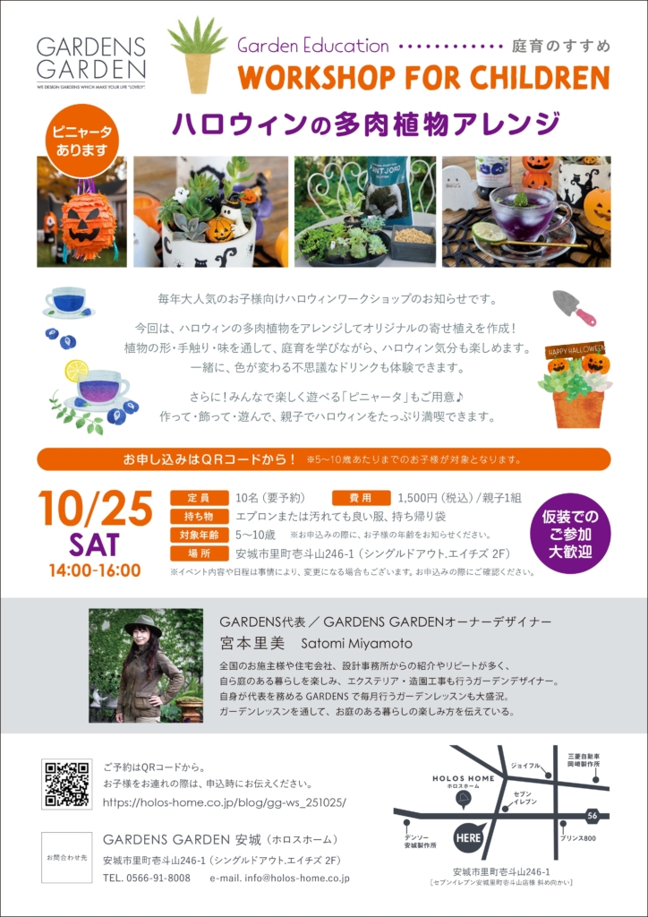 毎年大人気のお子様向けハロウィンワークショップのお知らせです。