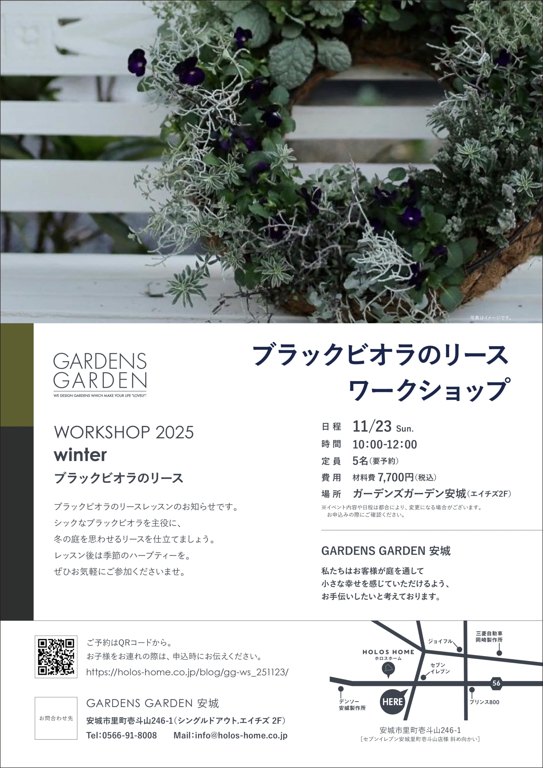 【11/23sun】ブラックビオラのリース | ワークショップ開催のお知らせ