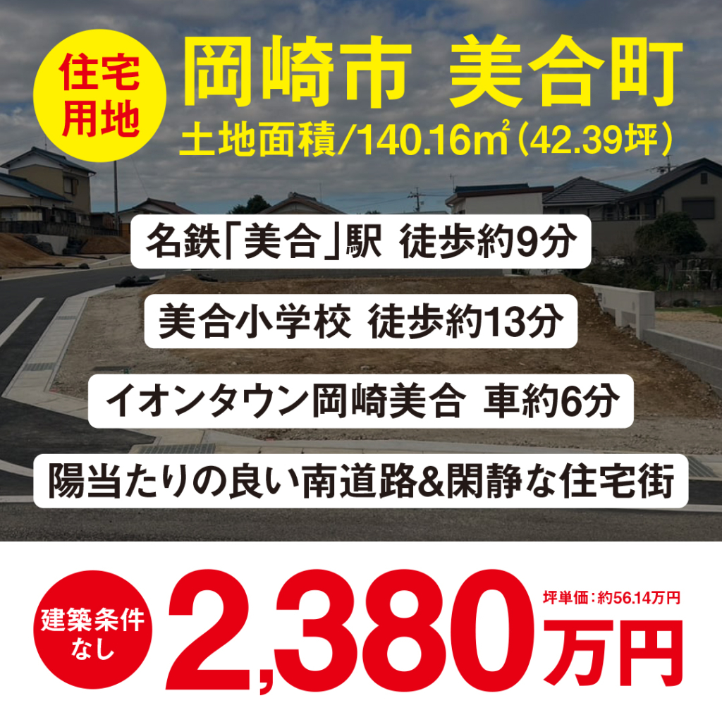 【住宅用地】岡崎市美合町西屋敷|2,380万円|1区画