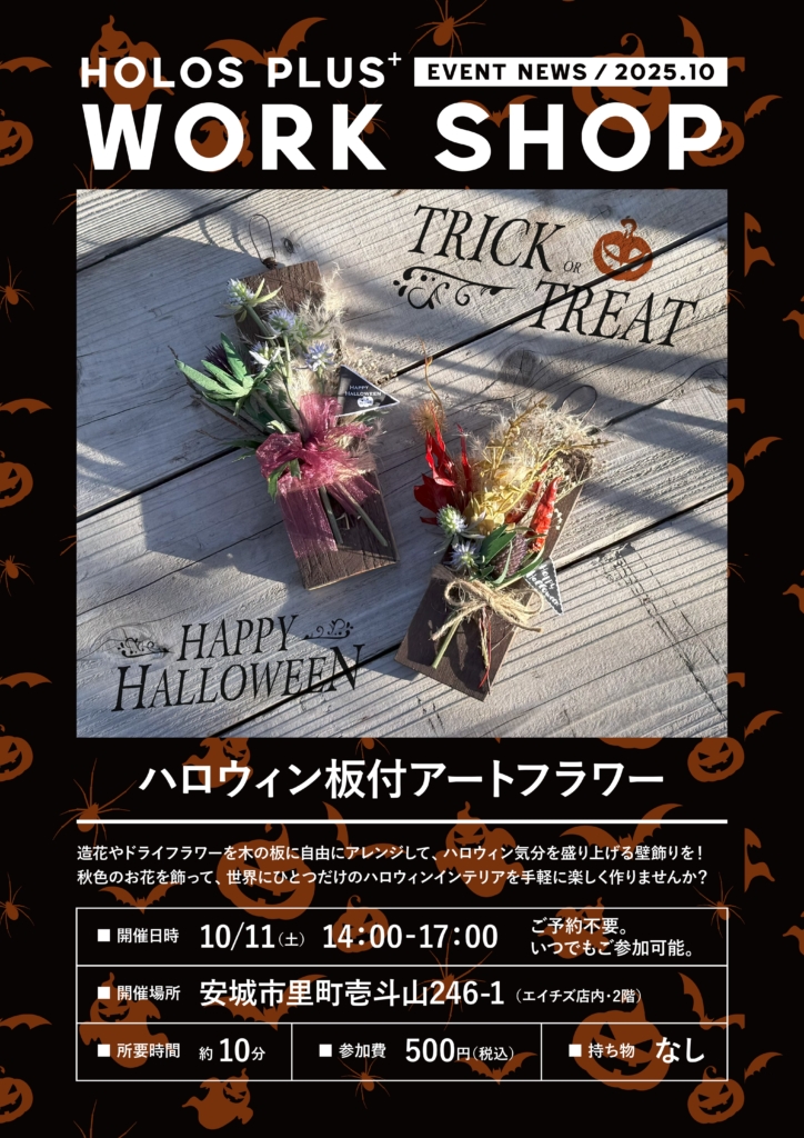 ■終了しました【10/11sat】ハロウィン板付アートフラワー | ホロスプラスワークショップイベント