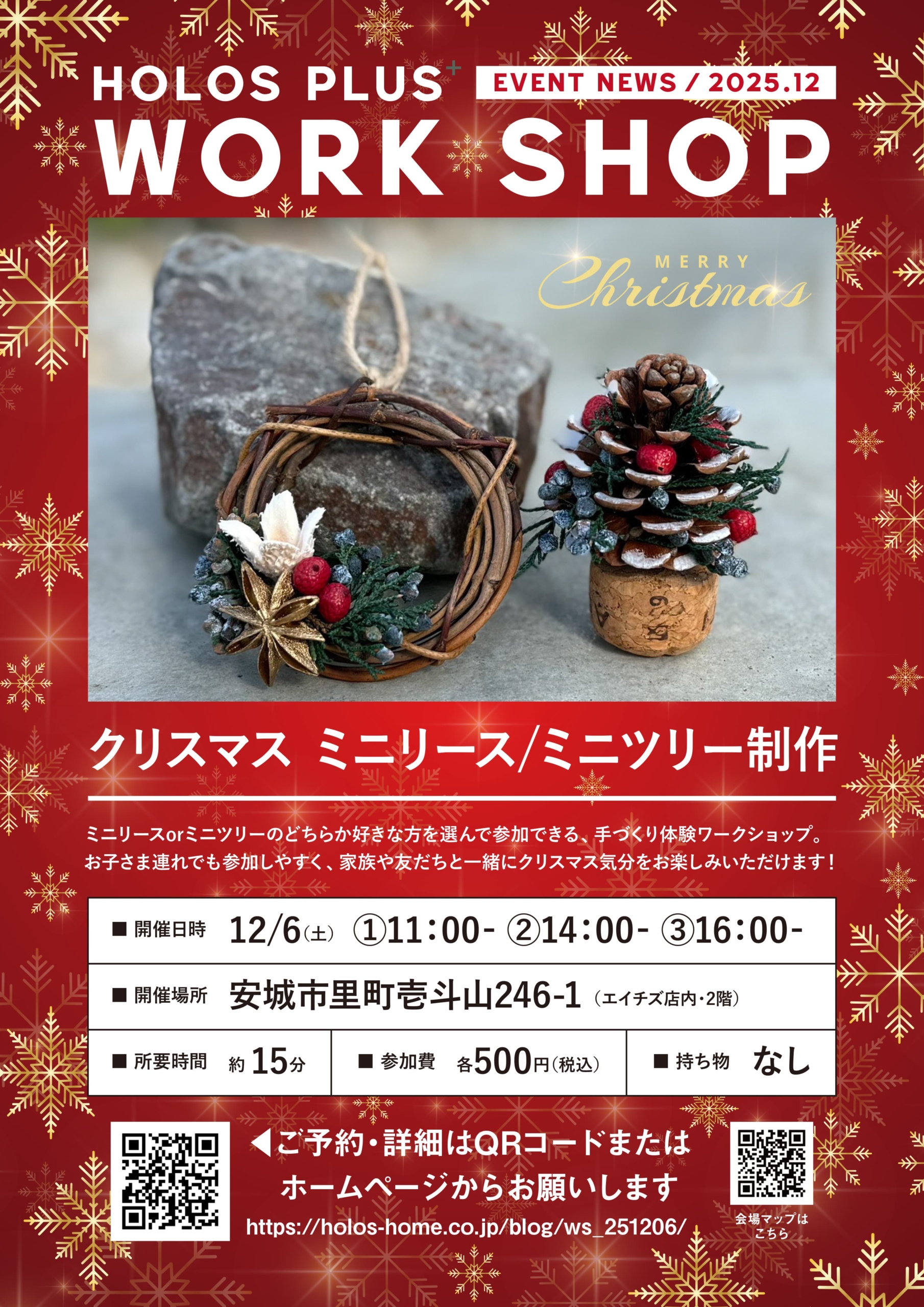【12/6sat】クリスマス ミニリース/ミニツリー制作 | ホロスプラスワークショップイベント