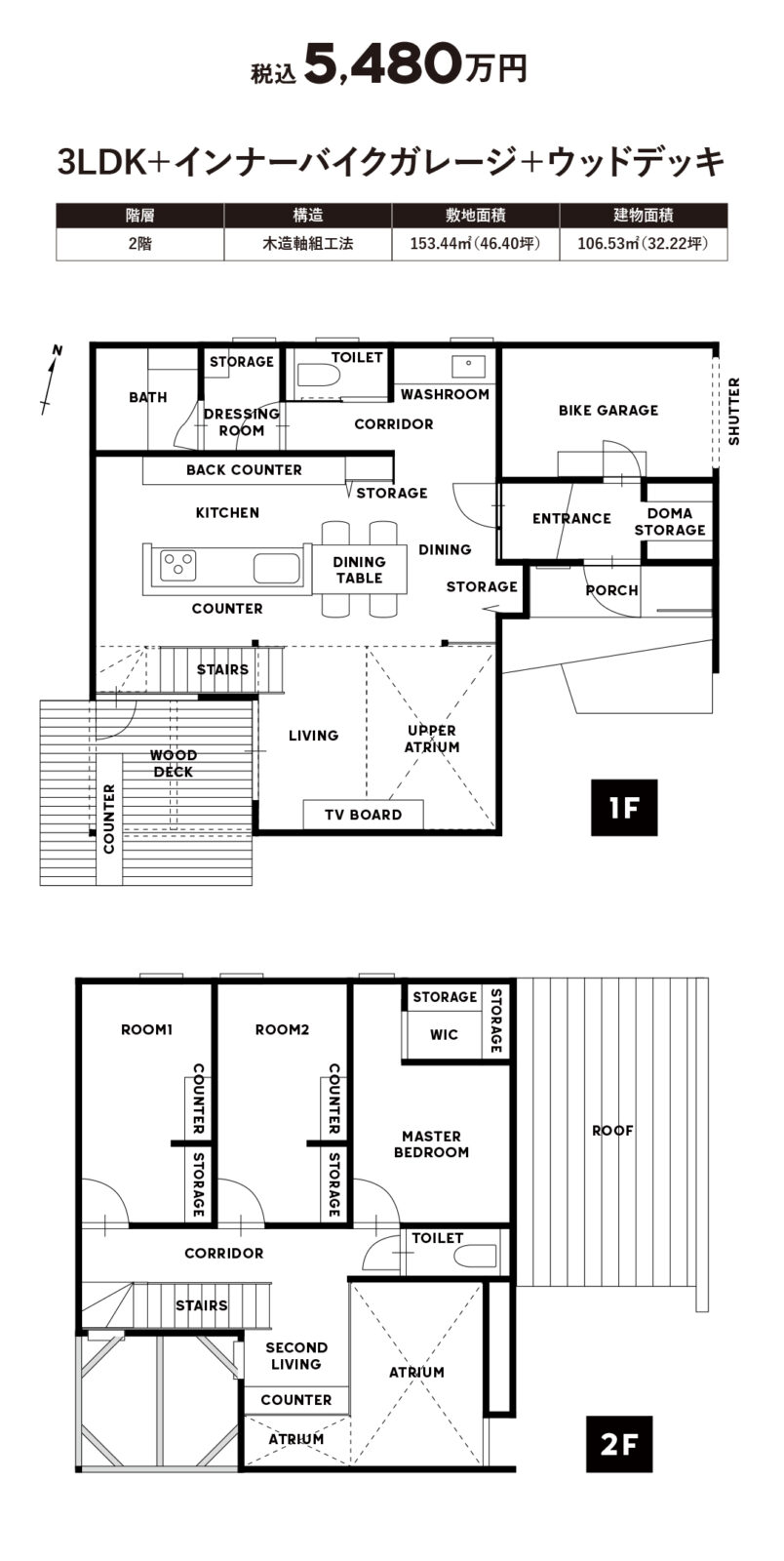 ●建物面積/106.53㎡(約32.22坪)
