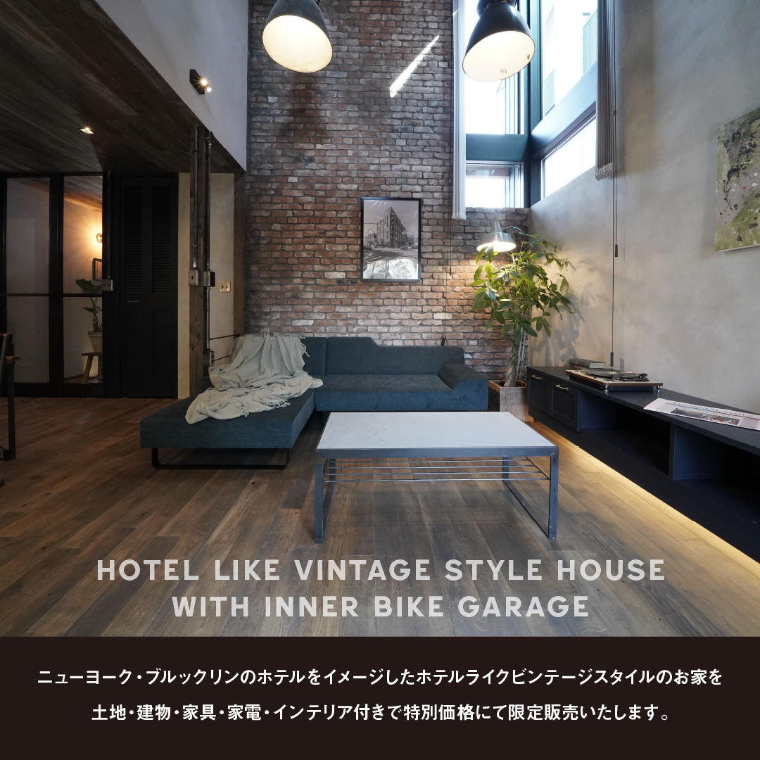 ニューヨーク・ブルックリンのホテルをイメージしたホテルライクビンテージスタイルのお家を、土地・建物・家具・家電・インテリア付きで特別価格にて限定販売いたします。