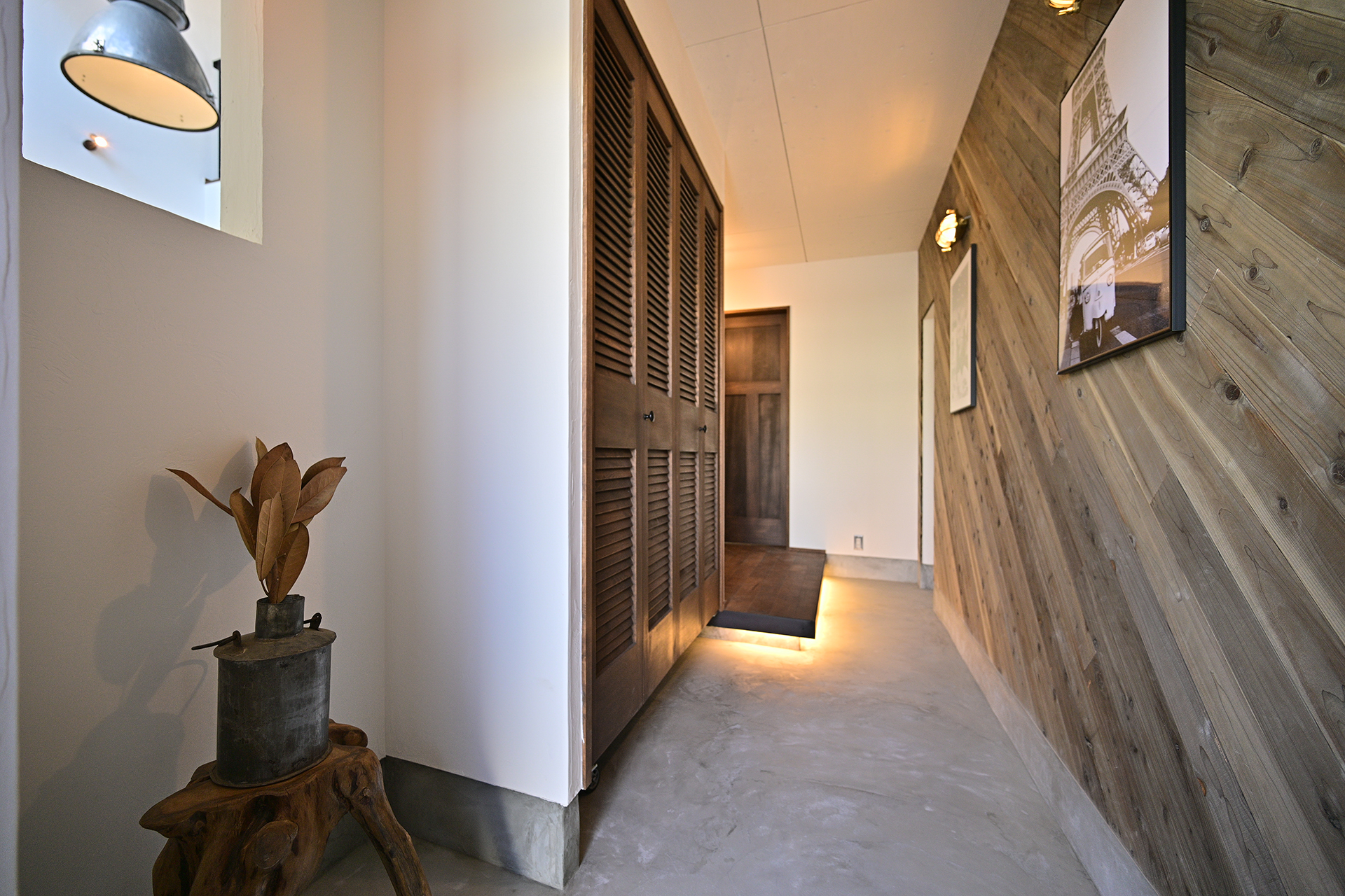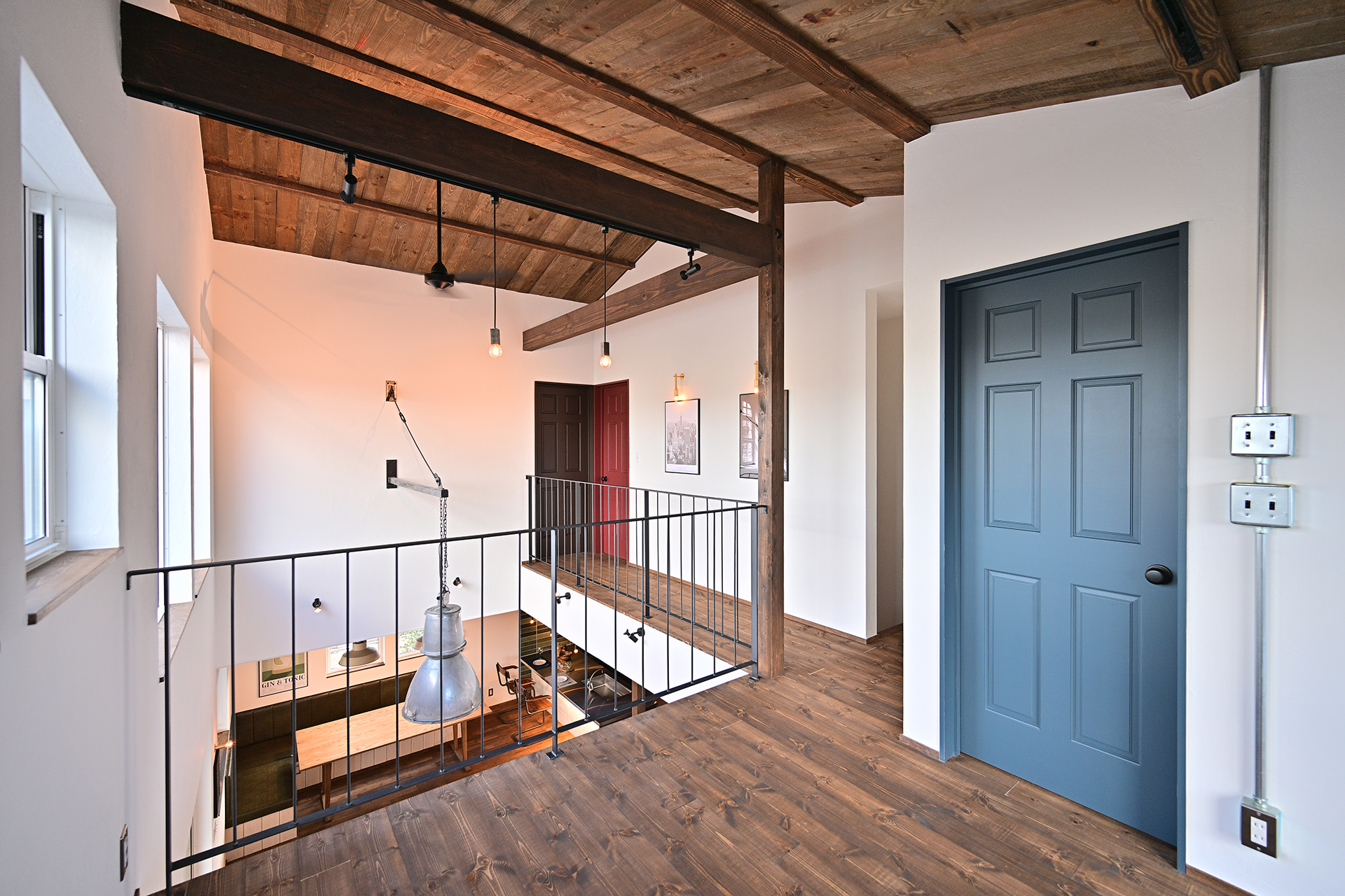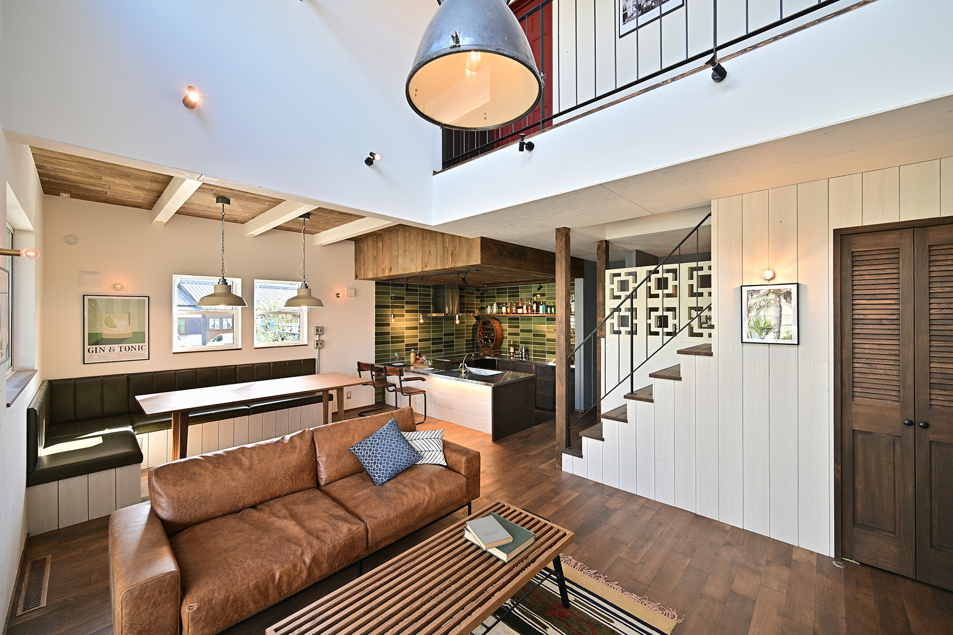 無垢の木、漆喰、アイアン、タイル、ヴィンテージ照明。