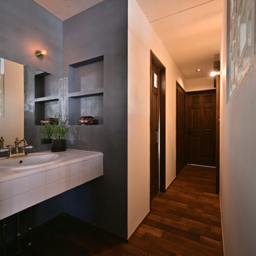 流行をなぞるのではなく、素材そのものの質感にこだわり、“好き”を詰め込んだ住まいに仕上げました。