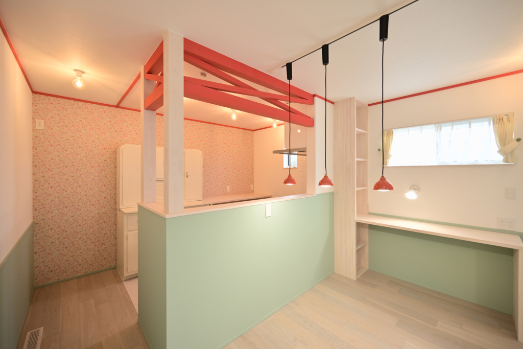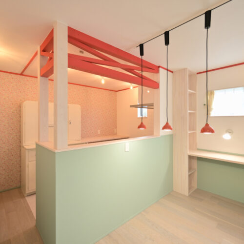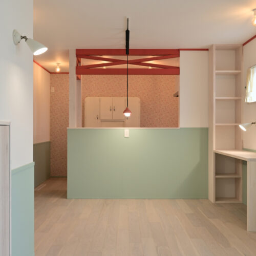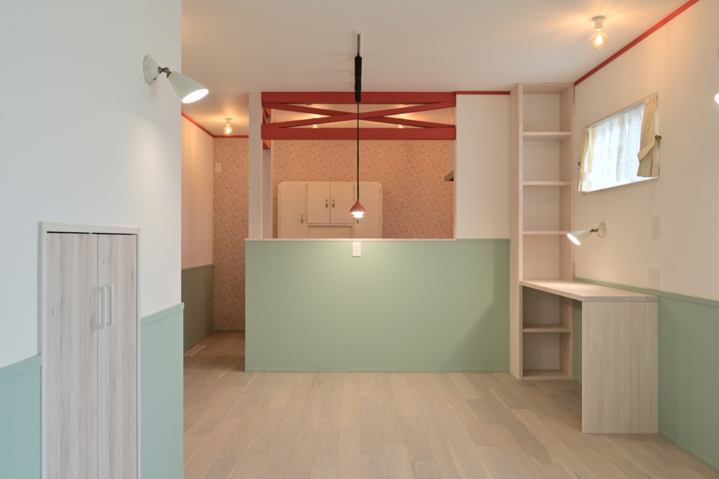 使いやすさとデザイン性を両立した造作家具や統一感のあるオリジナルの塗装。