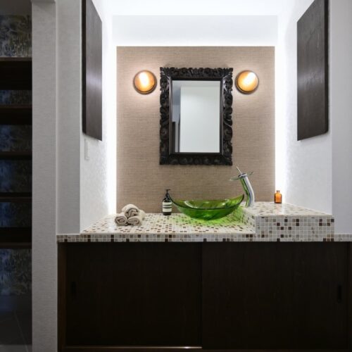 使いやすさとデザイン性を両立した造作家具や統一感のあるオリジナルの塗装。