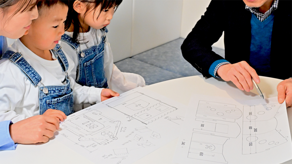 一級建築士がお子様に向けて図面やスケッチでプレゼンテーションを行います。