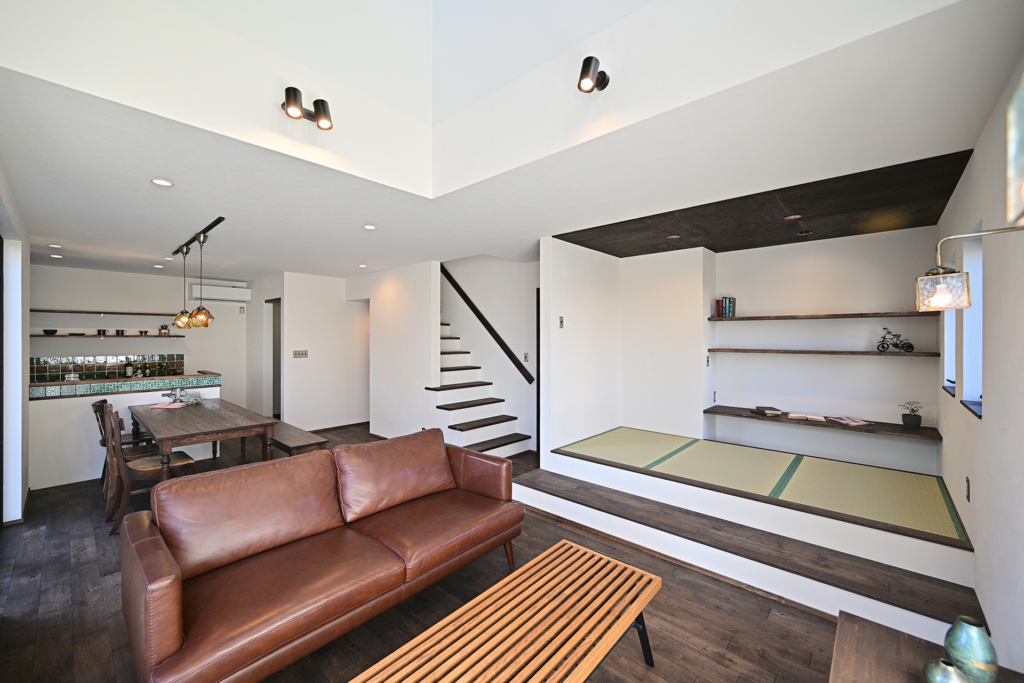 琉球畳ではなく、和のコンセプトに合わせて縁のあるイグサの畳を使用しました。