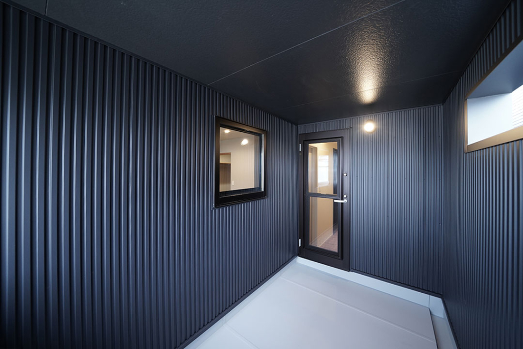 黒のガルバリウムを使った外壁。