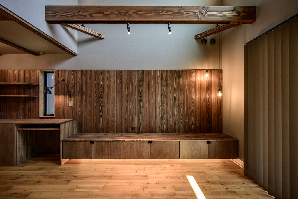 壁の一面を杉板張りにして、ノスタルジックな雰囲気を演出。