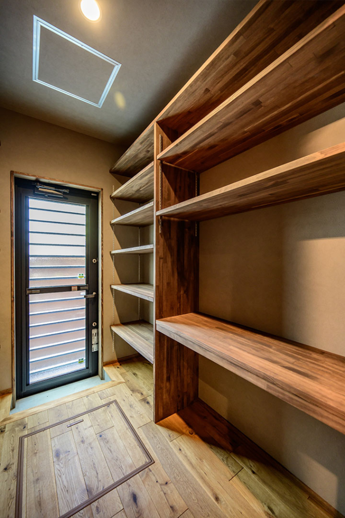 大容量の収納と、書斎コーナーも併設したパントリーです。