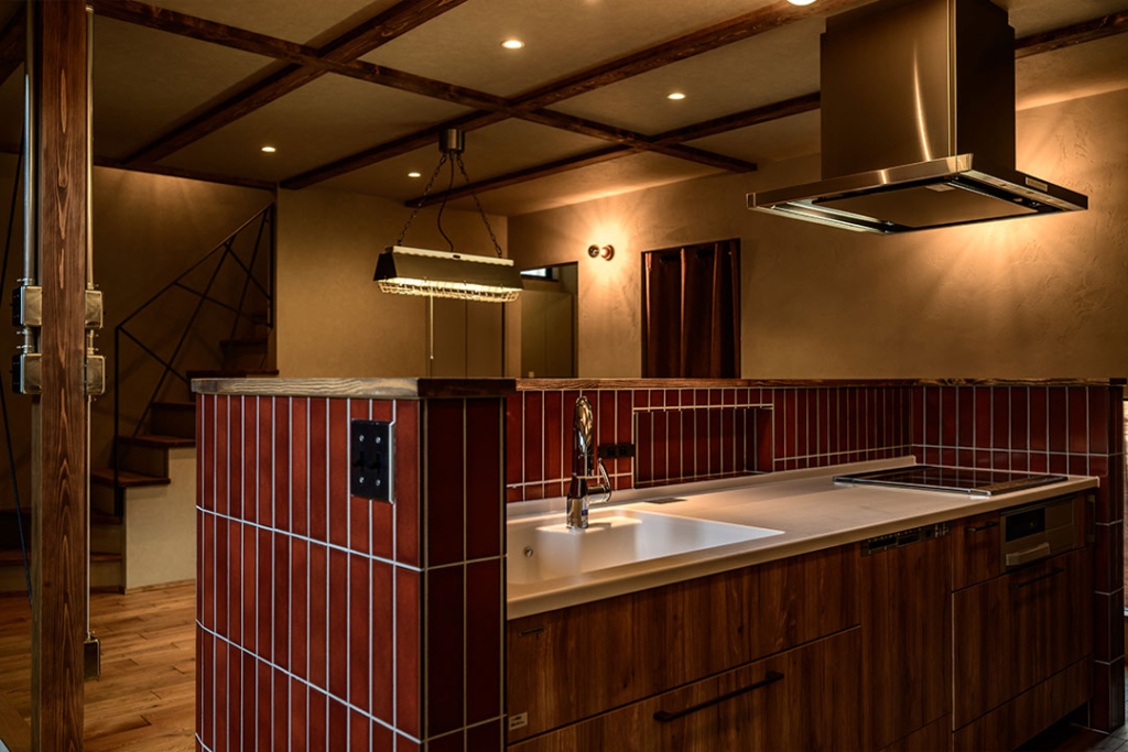使用した赤いタイルは奥様の直感で選んでいただいたものですが、お家の雰囲気にぴったりでとても素敵です。