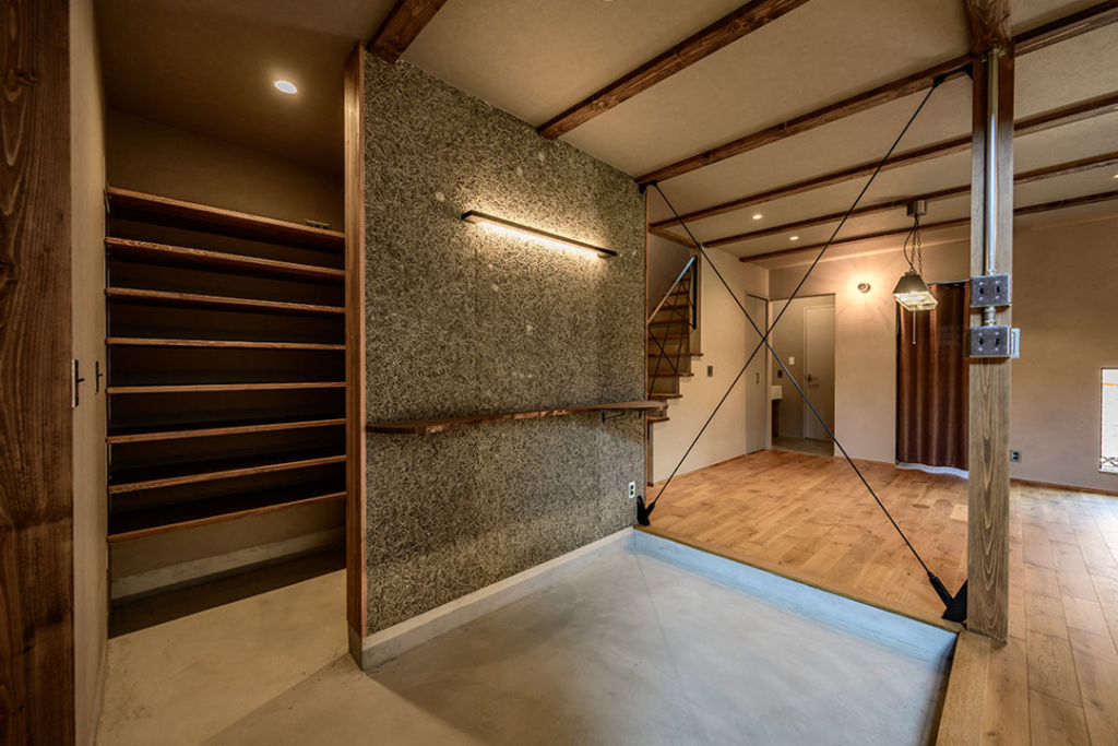 土間側は靴を、床を上がったところにはコートや鞄などを置けるようなイメージで作成しました。