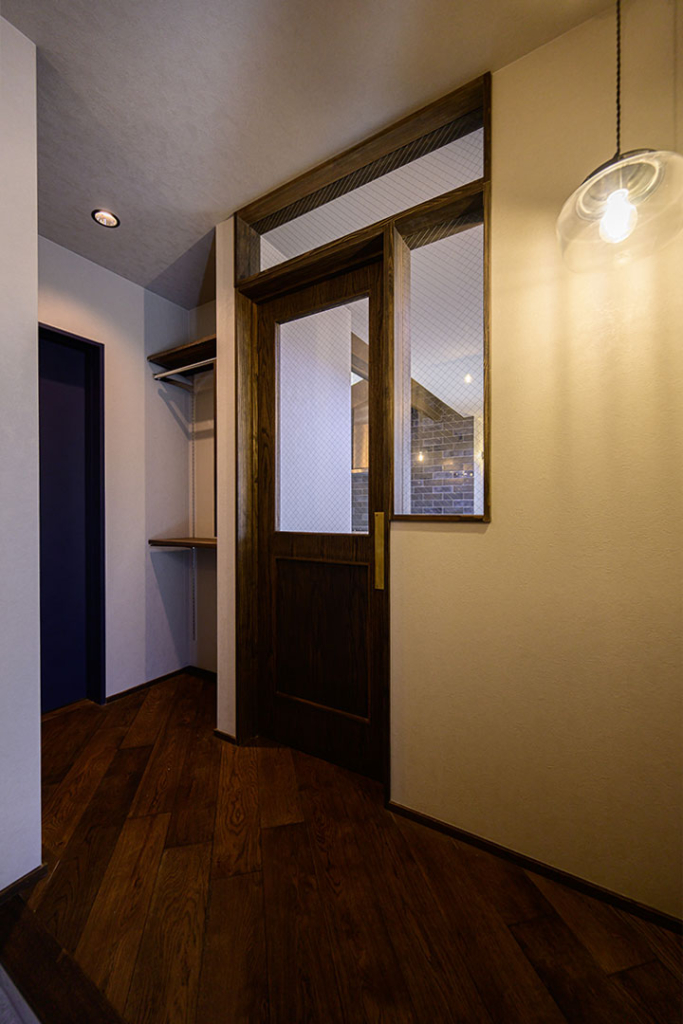 造作窓と同じデザインのガラスを使って、統一感を図りました。