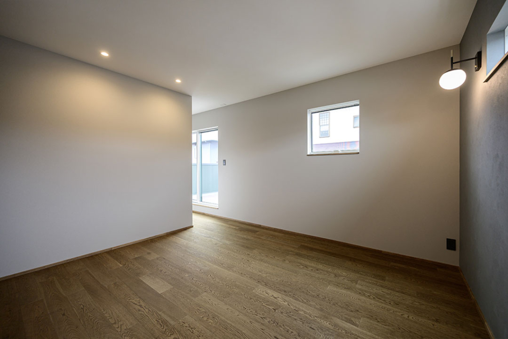 主寝室はホテルライクな雰囲気で、グレーを基調にまとめました。