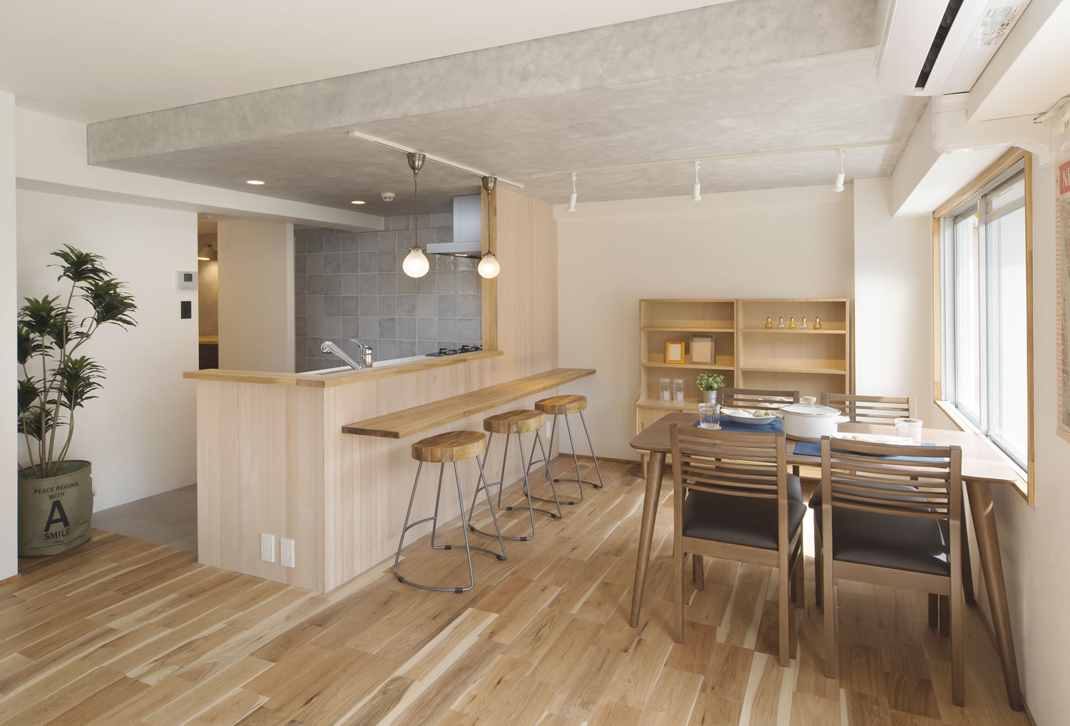 打ちっぱなし風のキッチン天井もやさしい色でお部屋に馴染みます