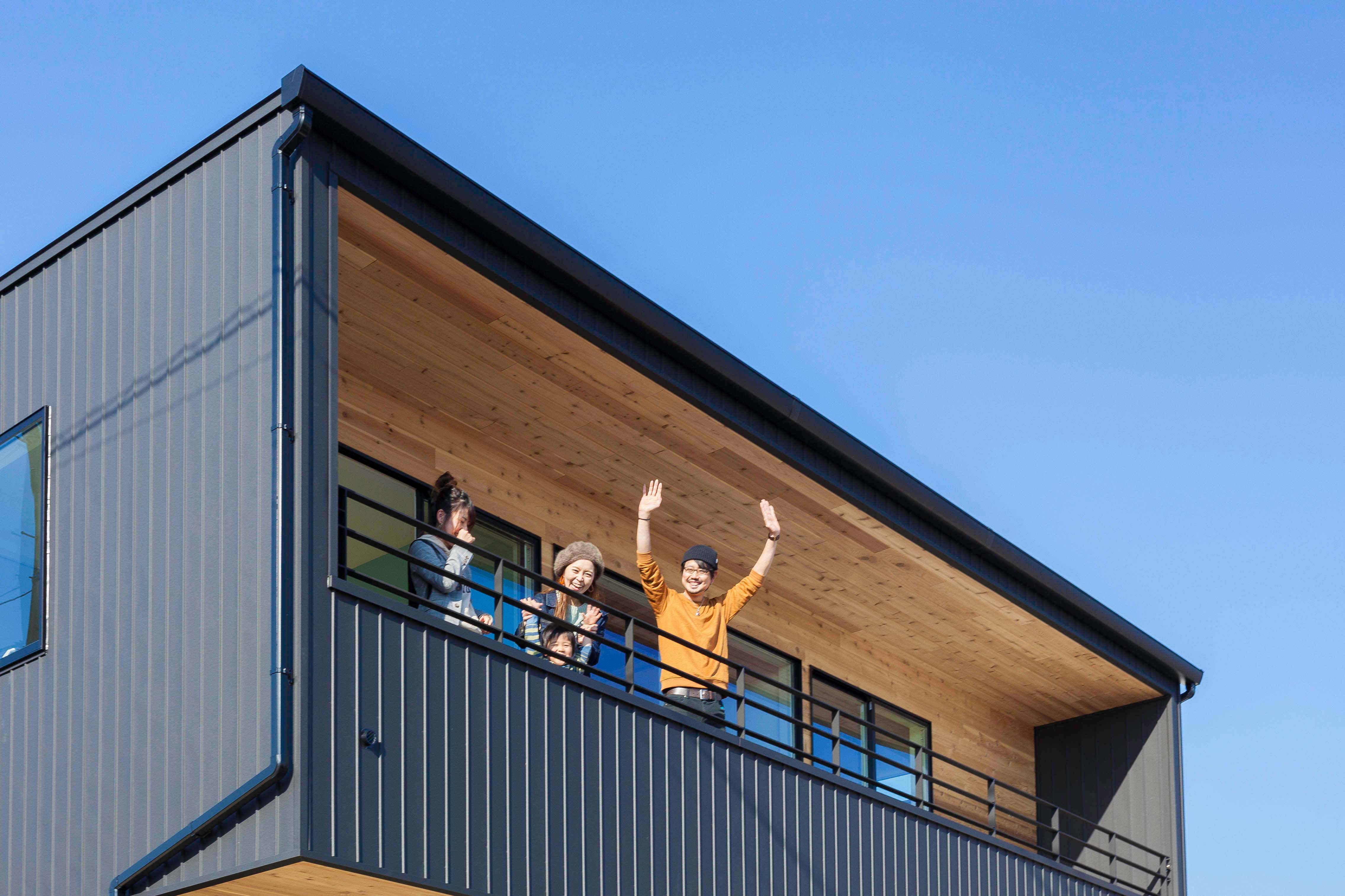 バルコニーのアイアン手すりとも合わせて、家全体がトータルコーディネートされています。