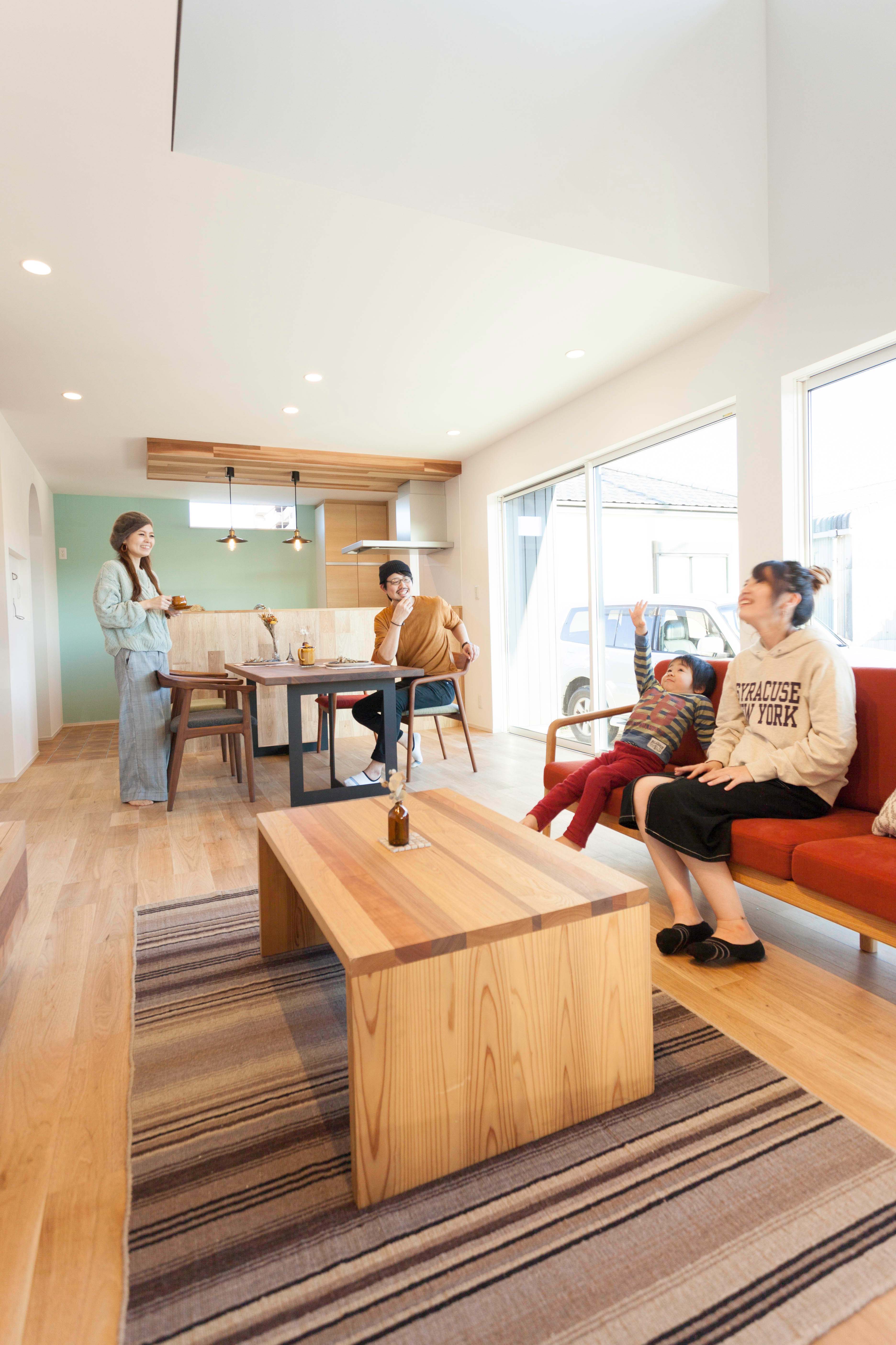リビングの上は吹き抜けになっており、どこにいても家族の気配を感じられます。