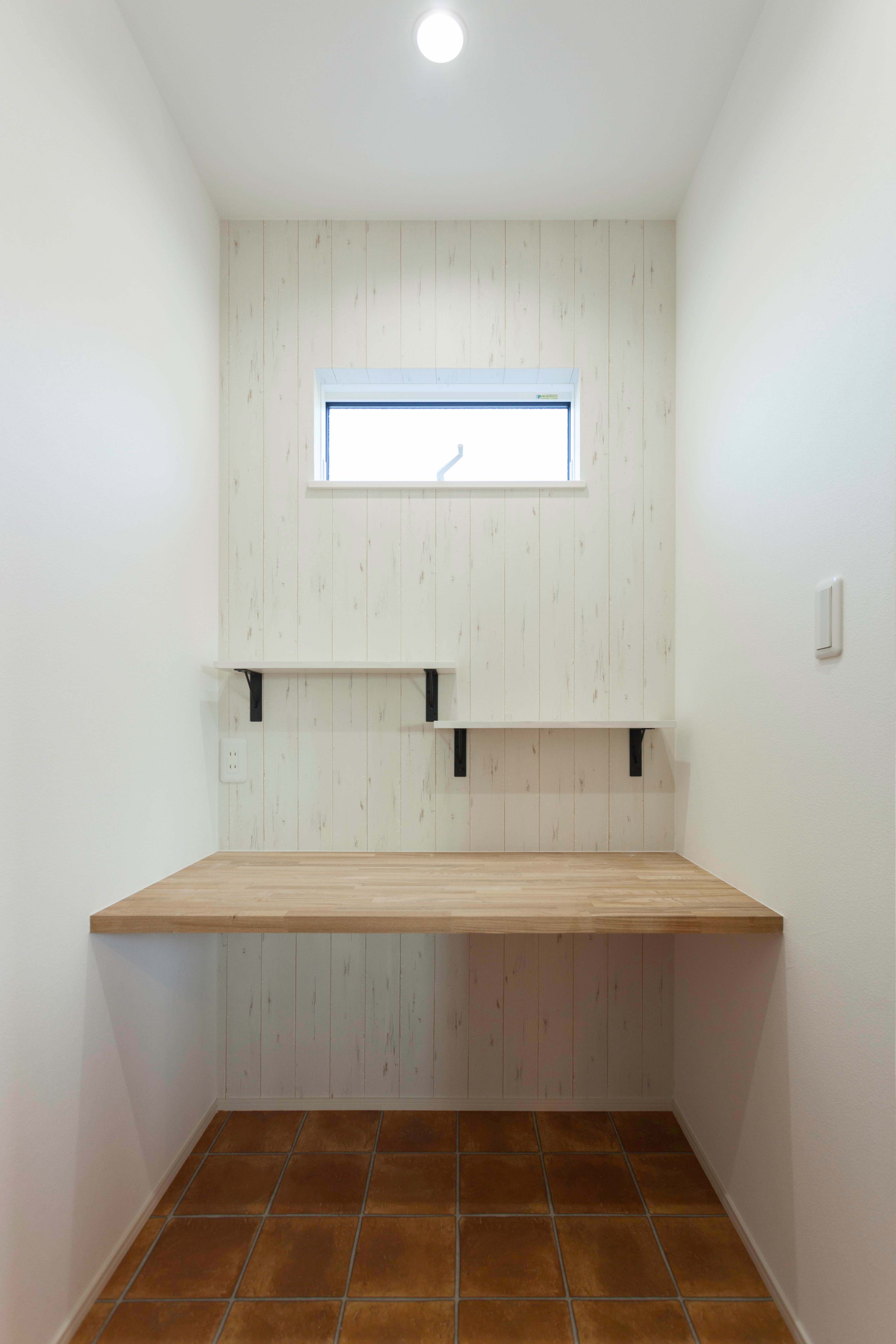 ワーキングスペースの奥にはパントリーがあるので、趣味の道具もしまえます。