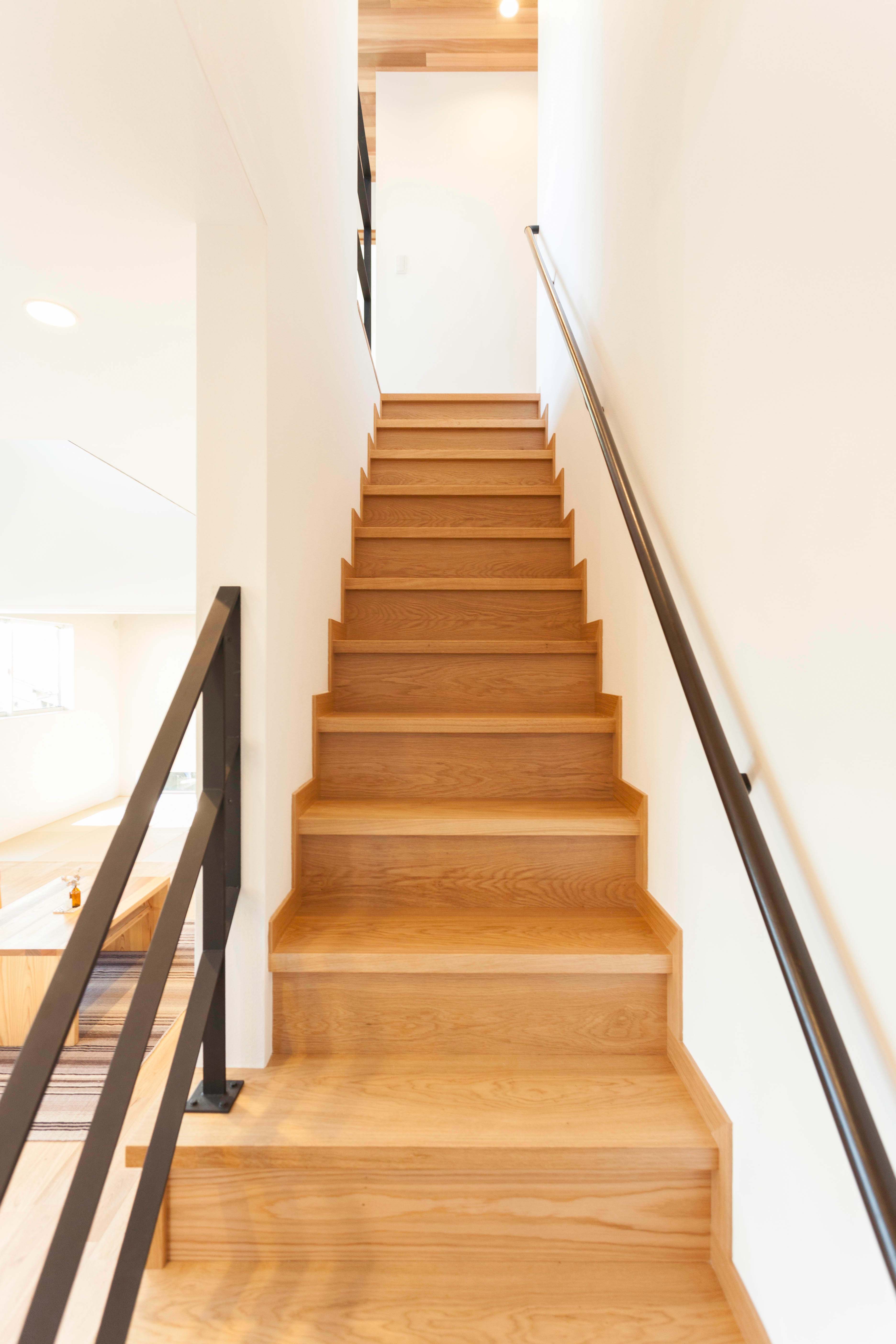 階段と吹き抜けのアイアン手すりがスタイリッシュでかっこいいです。