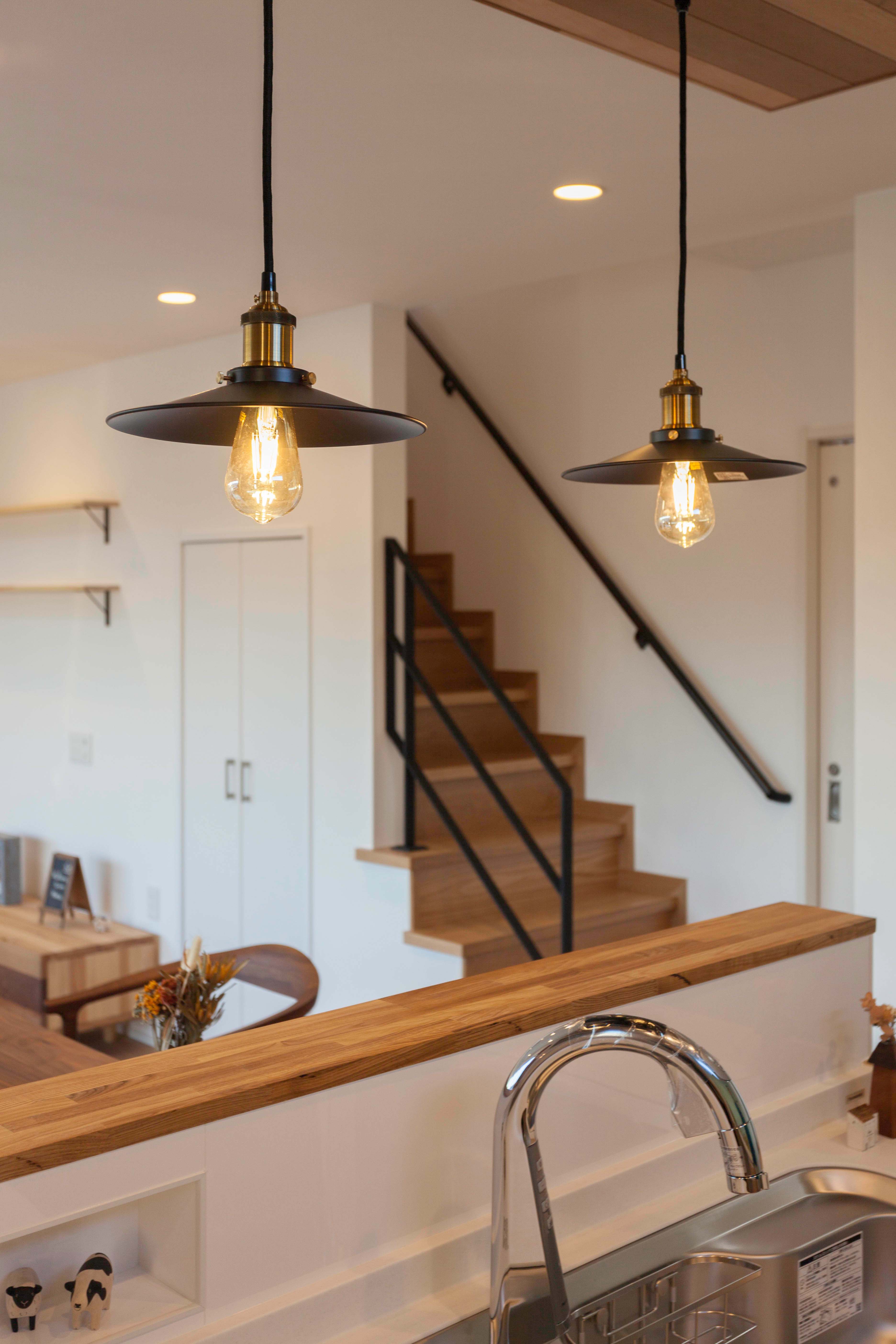 おしゃれなペンダントライトを吊るして、空間のアクセントに。