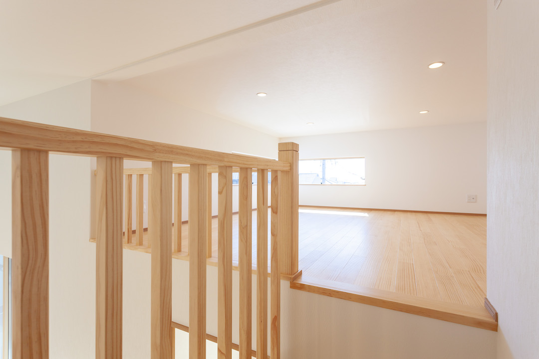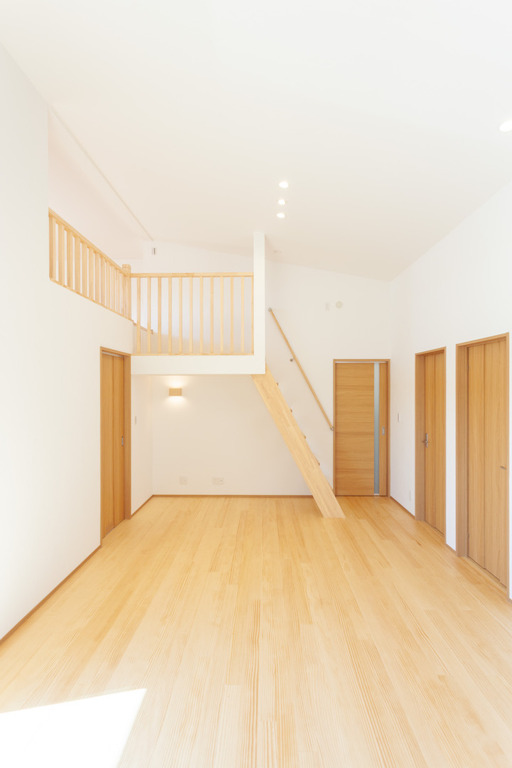 2階の天井を勾配天井にして、屋根裏のスペースにロフトを作りました。