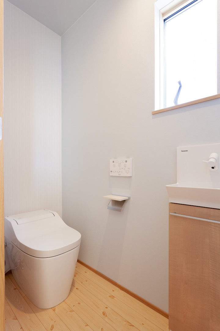 トイレはタンクレストイレです。PanasonicのアラウーノS。水を流すたびに、泡でトイレを洗ってくれます。