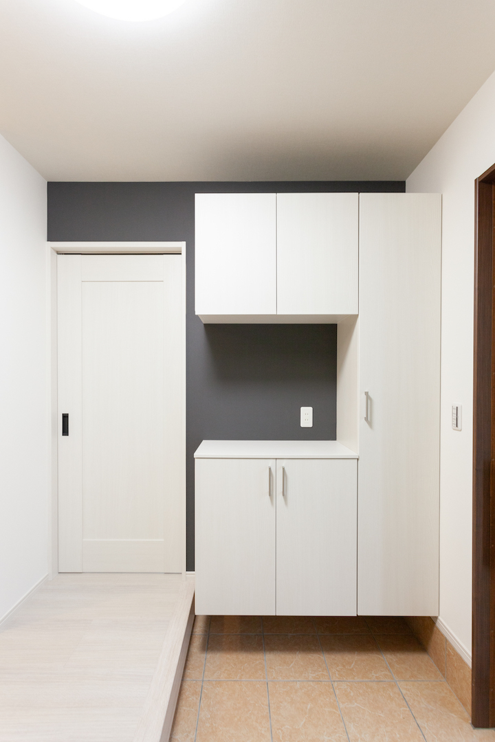 玄関を入って左には広々した土間収納のスペースを、右手には玄関収納。