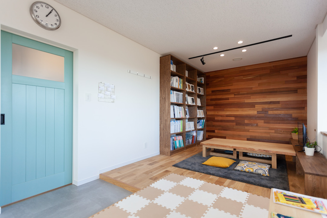 床は国産の無垢材で、長野県 安曇野産のマツを使用しています。天井はクロスです。