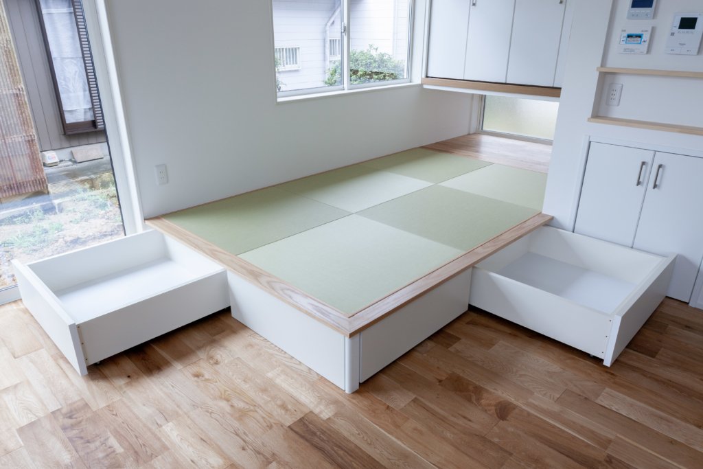 タタミコーナーには収納をつけ、畳下を有効活用しました