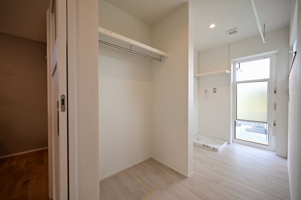 乾いた服は吊るしたまま収納する場所も用意しているので洗濯関係が一箇所で完結