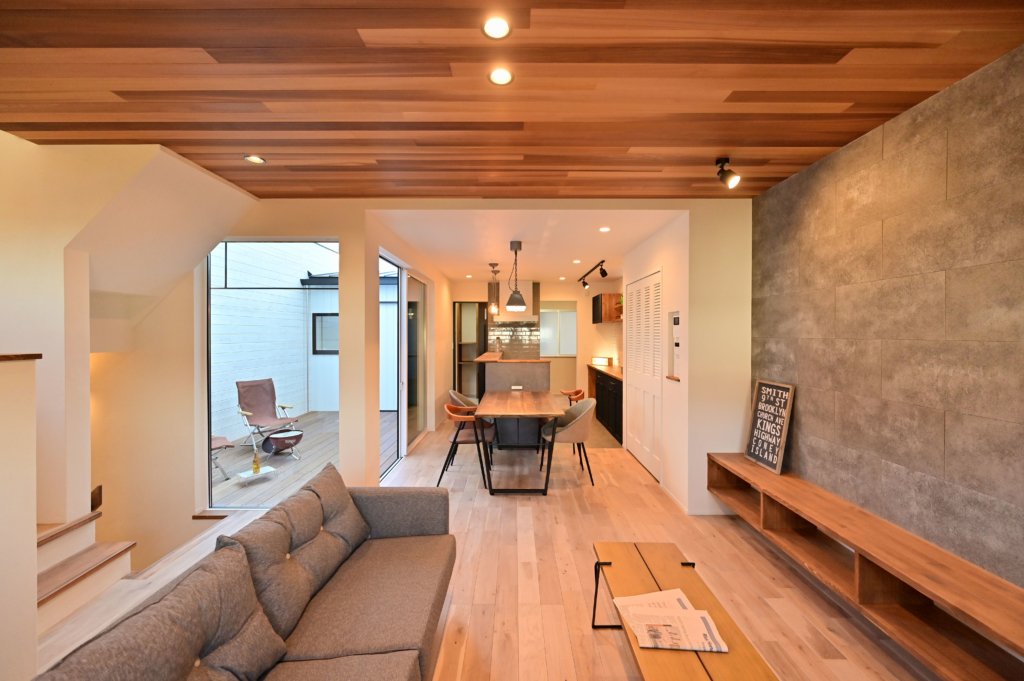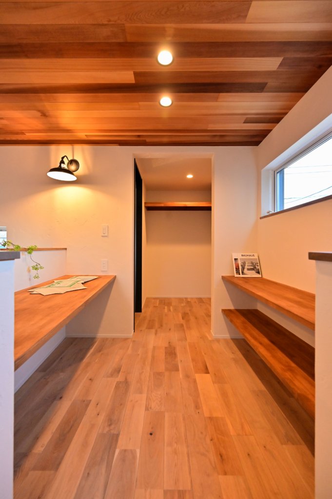 天井はレッドシダー、一部壁にはSOLIDOを使用