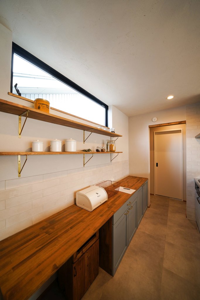 腰壁と同じ色のホロスホームオリジナルバックカウンター。