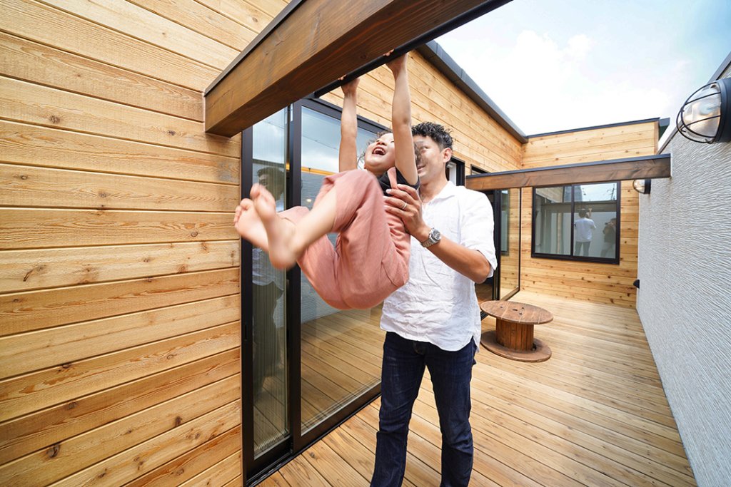 太陽の光をたっぷり取り入れられるバルコニーには、様々な使い方ができるアイアンバーを設置しました。