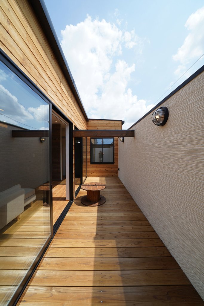 横長のスリット窓で光を取り入れます。