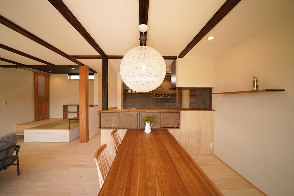 ダイニングには和モダンな照明を。