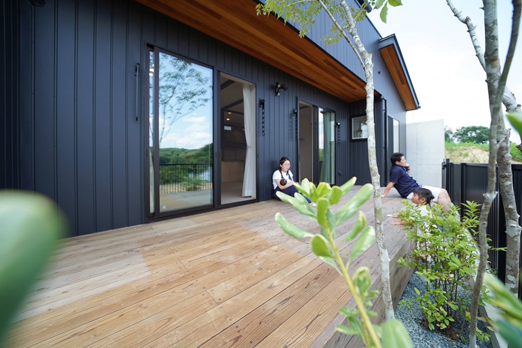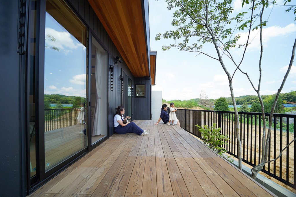 日々のお洗濯も、家族の憩いの時間も、風と木々の息吹を感じられるウッドデッキで。