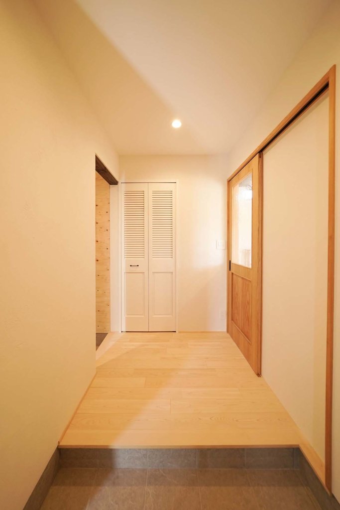 お子様と一緒でもゆったり座れる玄関。左奥には…
