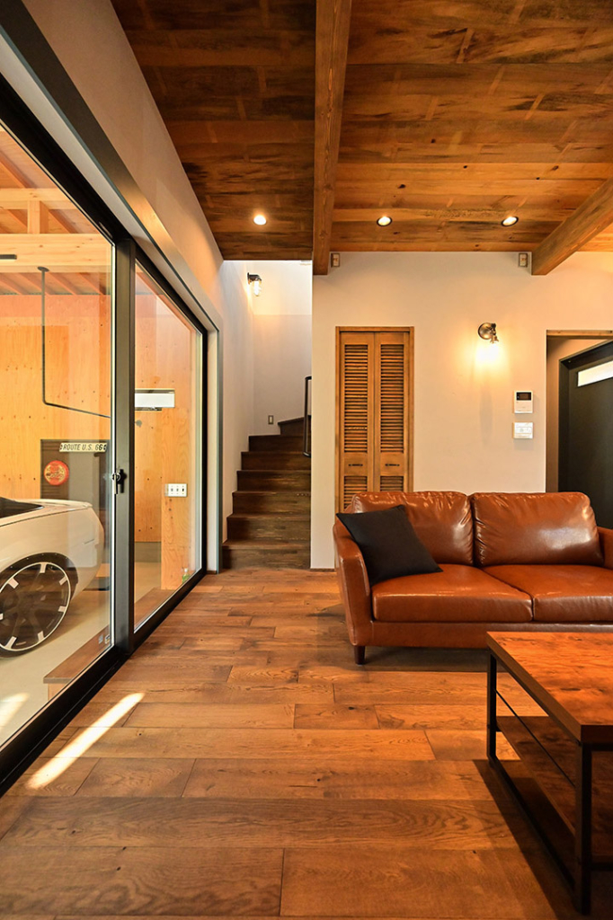 生活の中心となるお部屋に、車の存在を感じることができる贅沢な空間に仕上がりました。