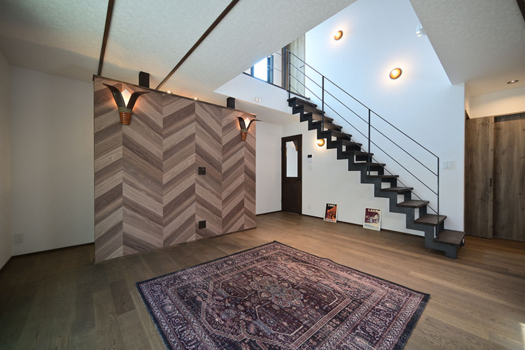階段・吹き抜け部分には、大林MHを参考にしていただいたデザインのアイアン手摺。