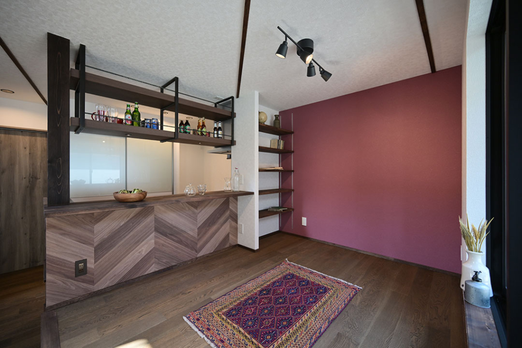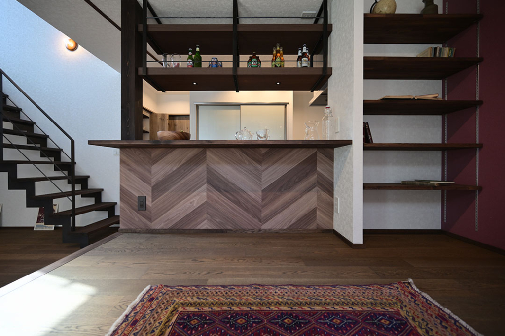 床上げしたダイニング側はBARのような空間にしたくて、カウンターをつけました。