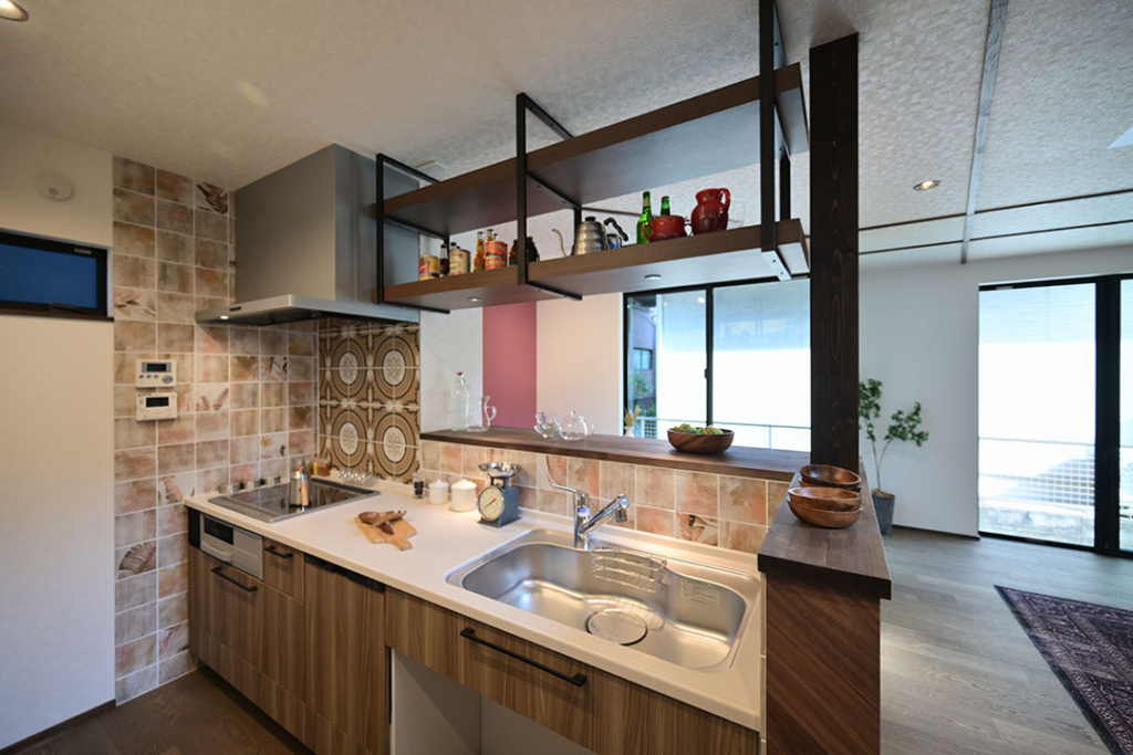 キッチンタイルは加熱機器前と、その他でデザインを変えリズム感が生まれました。