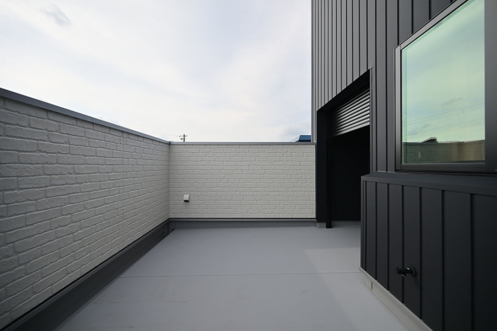 高さのある大きなバルコニーは、視線を遮りつつバーベキューなども楽しめるようなスペースに。