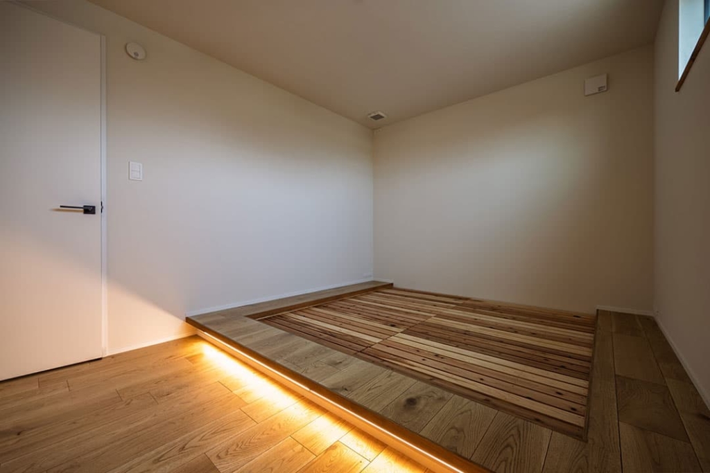 寝室のマットレスを置くスペースはオリジナルで設計。