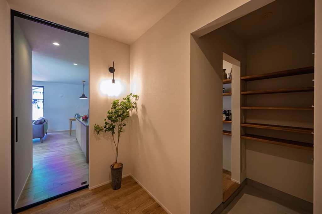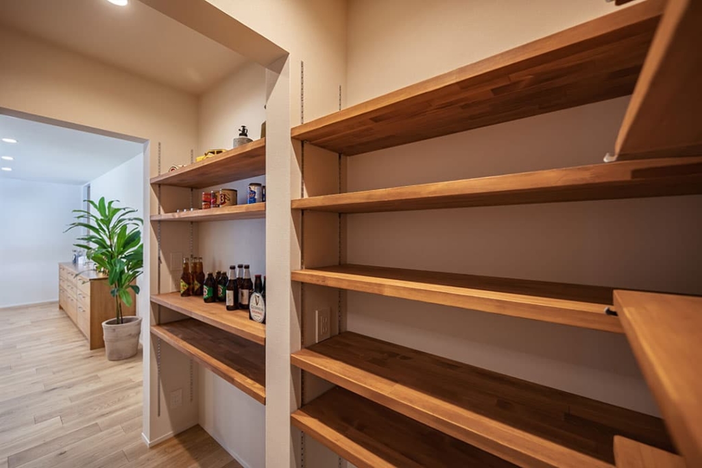 このパントリーを経てキッチンへ向かうルートの2種類用意しているので動線もばっちり。
