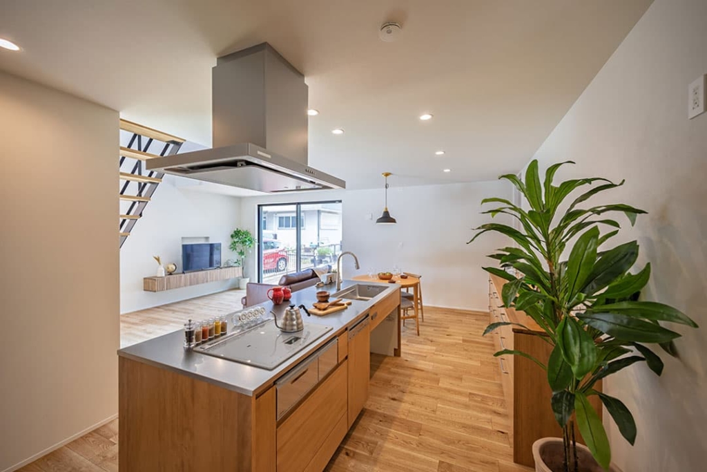 ウッドワンのキッチン。木の温もりが感じられるアイランドキッチンです。