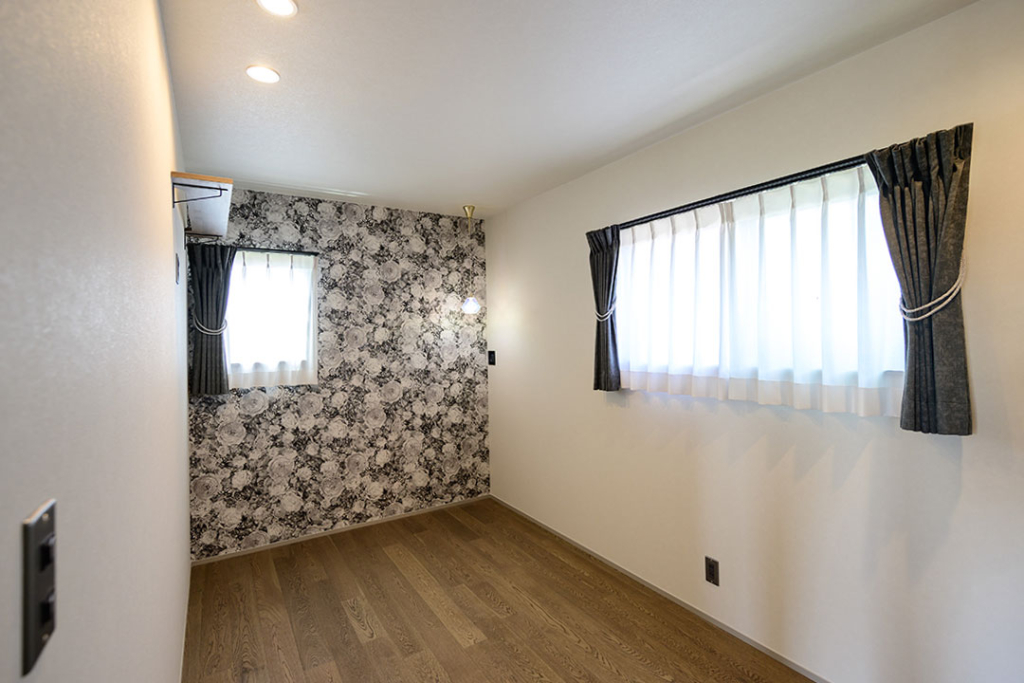 奥様の自室です。エレガントなアクセントクロスで、自分だけのお気に入りの空間を。