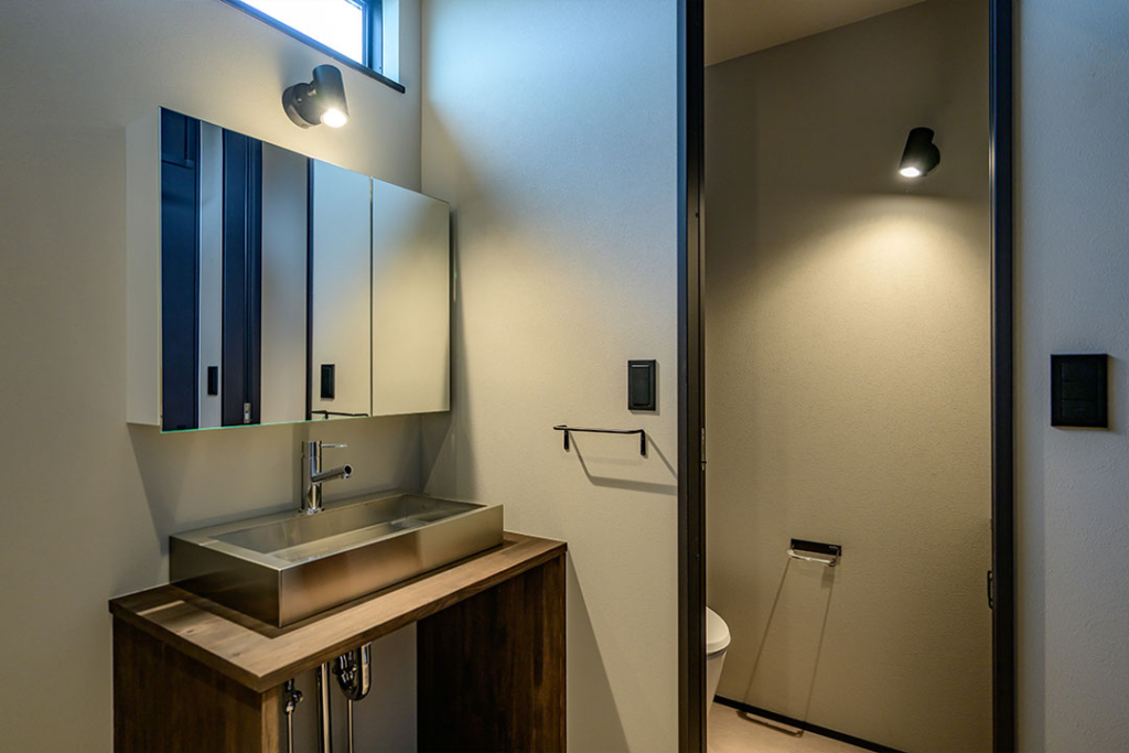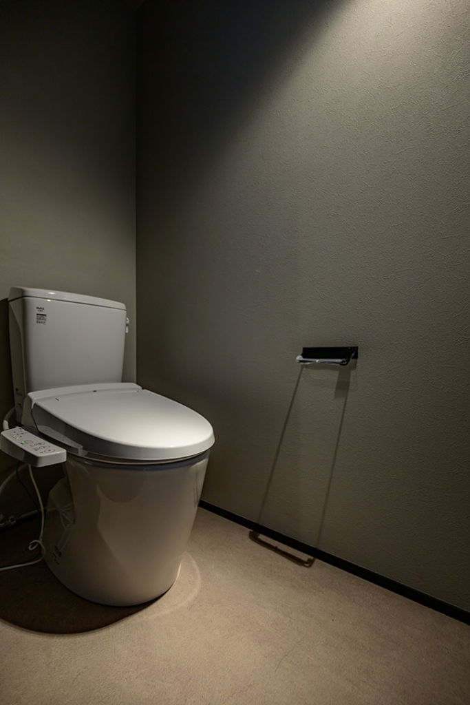 トイレもアパートのテーマにそって無骨な印象の内装に。